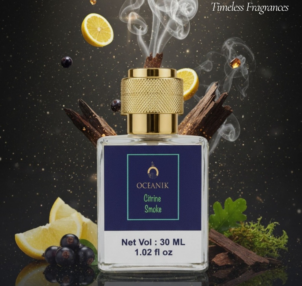 of citrus and smoky woods. Deep, mysterious, and irresistibly masculine.